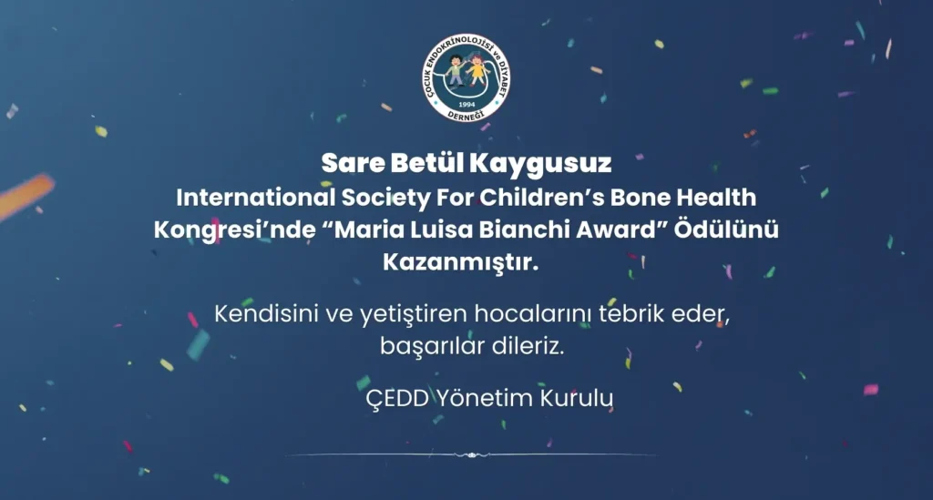 Sare Betül Kaygusuz, International Society For Children’s Bone Health Kongresi’nde “Maria Luisa Bianchi Award” ödülünü kazanmıştır.