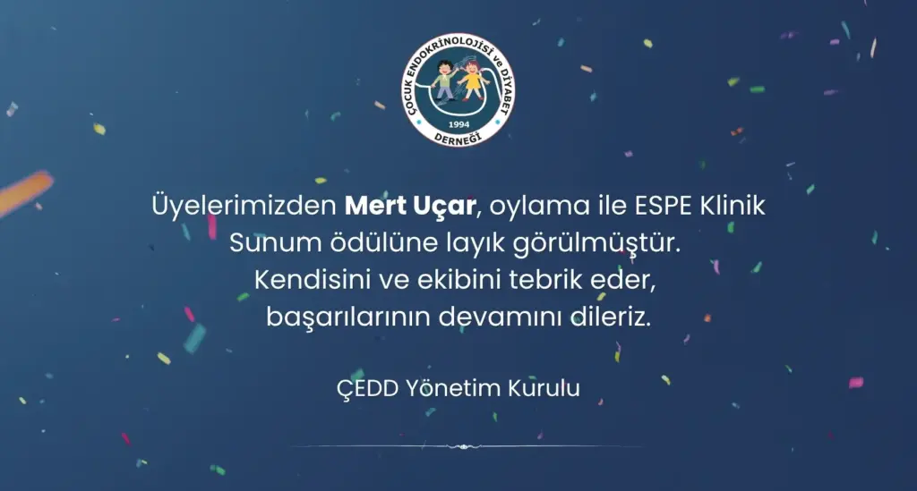 Üyelerimizden Mert Uçar, oylama ile ESPE Klinik Sunum ödülüne layık görülmüştür. Kendisini ve ekibini tebrik eder, başarılarının devamını dileriz.