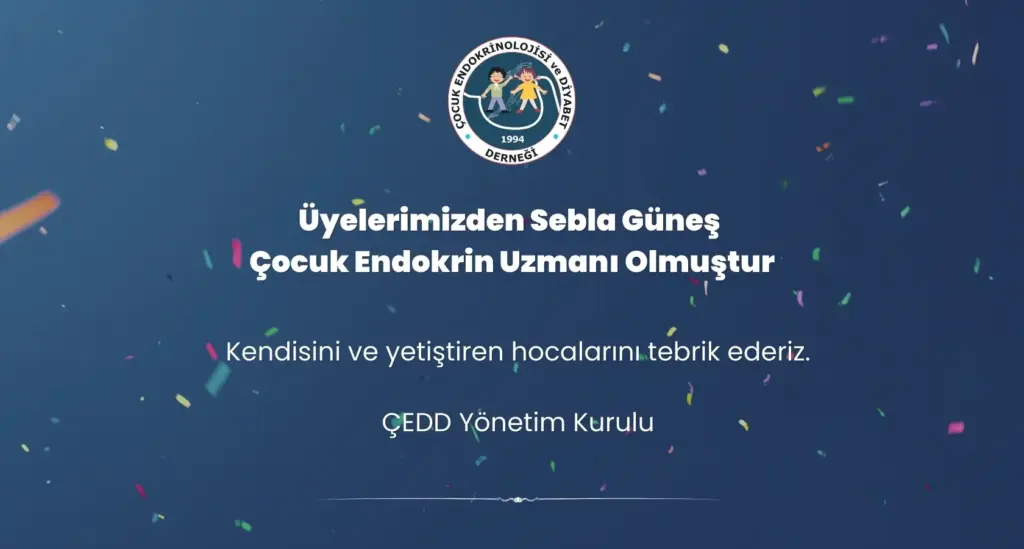 Üyelerimizden Sebla Güneş Çocuk Endokrin Uzmanı olmuştur. Kendisini ve yetiştiren hocalarını tebrik ederiz.