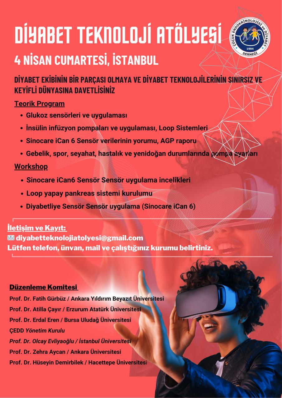 14. Diyabet Teknoloji Atölyesi 4 Nisan 2026 Cumartesi günü İstanbul’da yapılacaktır. Katılmak isteyen üyelerimizin [email protected] mail adresine mail ile başvurmaları gerekmektedir.