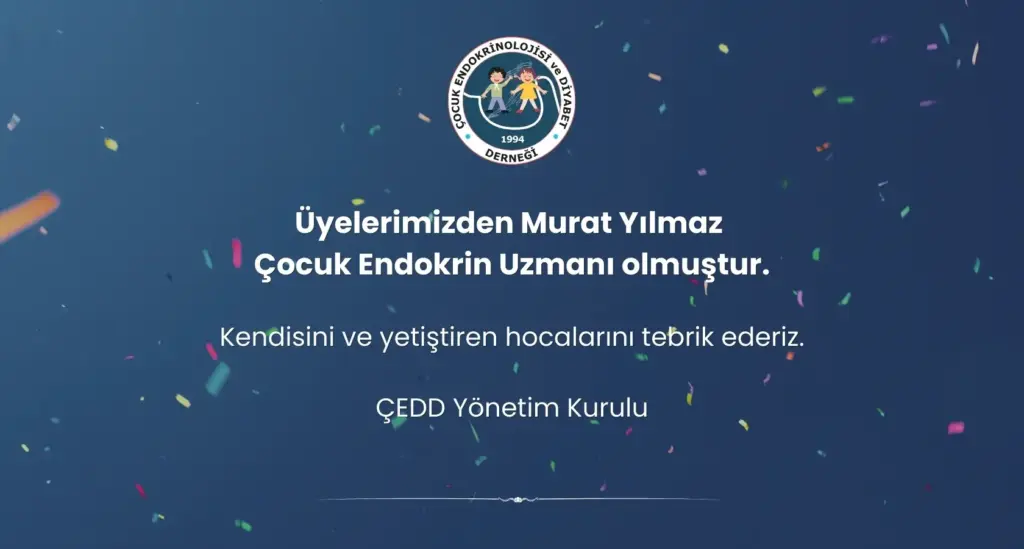 Üyelerimizden Murat Yılmaz Çocuk Endokrin Uzmanı olmuştur. Kendisini ve yetiştiren hocalarını tebrik ederiz.